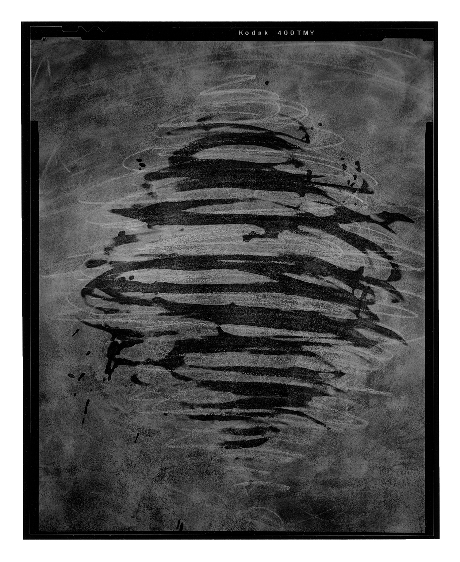white film, capturing the gestural movement that she controlled and the evaporation that occurred naturally.